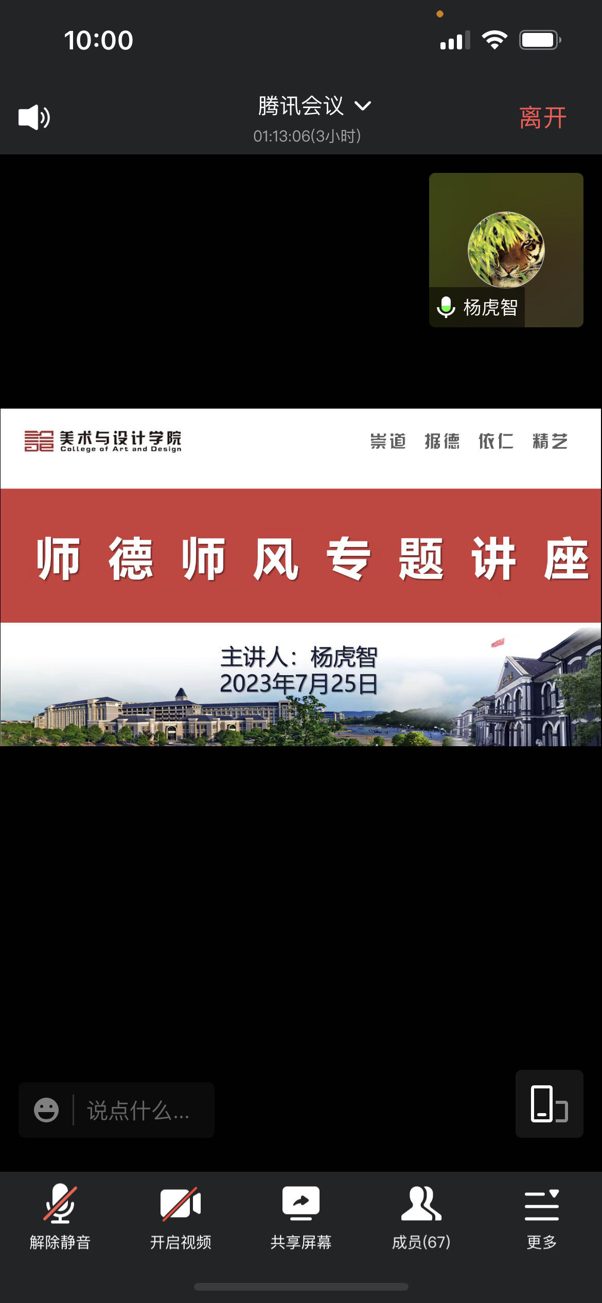 2023年7月25日上午,bevictor伟德官网师德师风专题党课在腾讯会议开讲,主讲人为公司党委书记杨虎智,美设院全体教师参加。