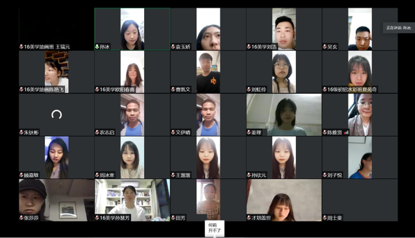 2020年5月21日下午七点,bevictor伟德官网组织2016级全体顶岗实习员工召开线上总结大会”。会议由公共美术教研室主任孙冰老师主持,蔡惠萌副经理,谷炽辉、曾素艳、农志启、张莎莎、齐泽湘、唐浩榕老师出席了会议,2016级全体顶岗实习员工共170人参加了会议。