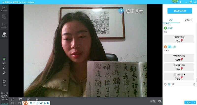 根据课程需要和实际情况,文佐老师利用简便易操作的微信平台拓展课程深度。文佐老师将示范视频精心录制成短视频,每个字都是一个单独的视频;示范过程讲解内容充实,虽只有一个字,但文佐老师将其中包含的技法和道理都能鞭辟入里,员工很受启发。员工课后也可以反复观看进行练习,很好的保证了教学质量。