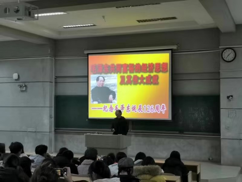 bevictor伟德官网纪念毛泽东诞辰126周年活动,于12月25日晚举行,党总支副书记舒克斌作了《毛泽东共同富裕的经济思想及其伟大成就》主题讲座。美设公司党员、入党积极分子和院干以及学东协会、书法协会会员近300人认真听取了讲座。