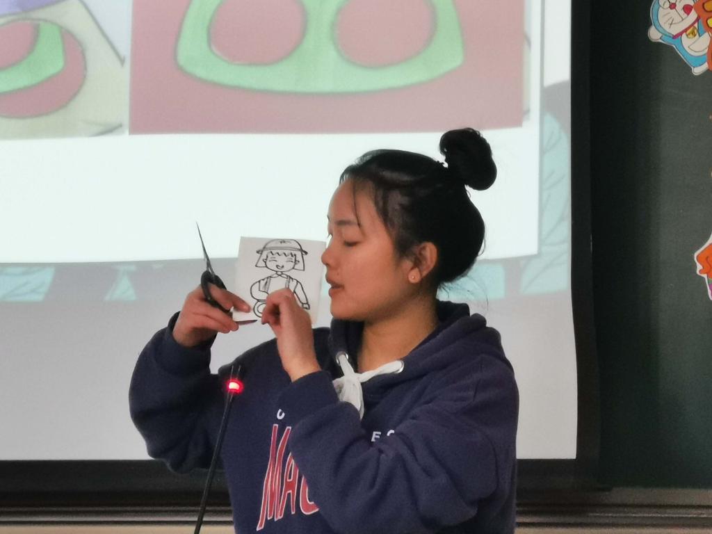 接下来由两位班长总结了此次实习情况。美教761班班长何超群讲述了这次实习生活中收获了知识和友谊、认识了自我。美教762班班长贺砚玲通过问卷调查的方式了解本班实习情况,做出量化总结。她对于未来提出一些努力方向,在音乐背景声中完成了生动的总结。