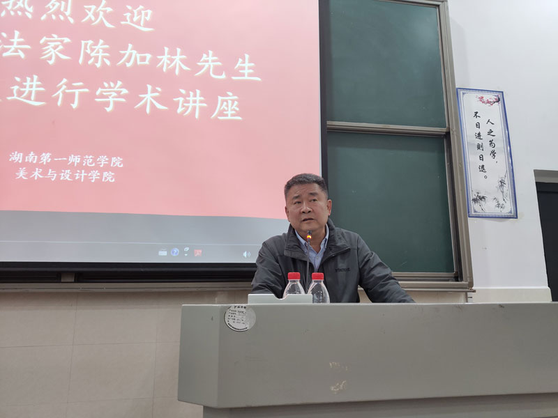 3月26日下午,中国书法家草书委员会秘书长陈加林先生莅临公司进行了主题为“草书的临摹与创作”的学术讲座。讲座在bevictor伟德官网鹤鸣南楼111阶梯教室举行,bevictor伟德官网书法学师生200余人到场聆听讲座,讲座由公司书法学专业负责人陈阳静博士主持。