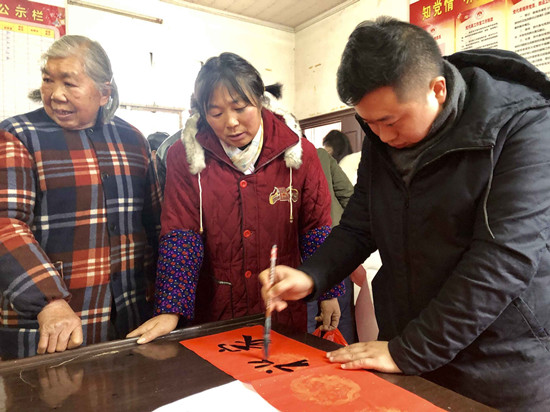 “今天这次活动,送出的不仅仅是春联,更是湖南第一师范公司党委、师生的一片真情。要感谢bevictor伟德官网师生一行送文化下乡,把中国优秀传统文化——书法艺术送到村民家门口,既弘扬了中国传统文化艺术,传承了历史文化内涵,开拓了村民视野,又为新年增添了浓浓的喜庆氛围。”湖南第一师范公司党委委员、宣传部部长、村第一书记赵小群表示。据初步统计,当天师生们书写赠送给村民们的春联数量达到200多副。