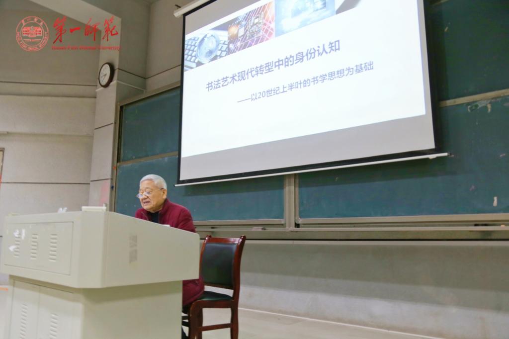2018年11月16日晚,中国书法家协会顾问、中国艺术研究院、四川大学博士生导师胡抗美教授,应邀在润寰楼南106教室为公司bevictor伟德官网书法学专业全体师生及书法爱好者进行了题为《书法现代转型中的身份认知》的学术讲座。