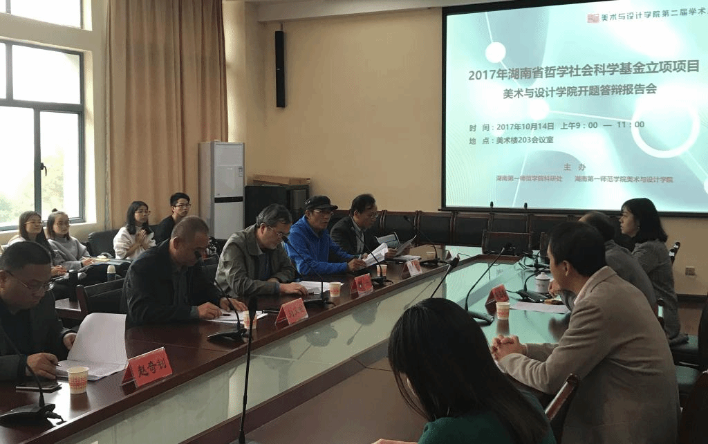 10月14日上午,2017年湖南省哲学社会科学基金立项项目bevictor伟德官网开题答辩报告会在美术楼会议室召开。公司副董事长曹兴教授、湖南师范大学美术公司谢雱教授、中南林业科技大学家具与艺术设计公司经理刘文金教授、湖南理工公司美术公司党总支书记洪琪教授、公司科研处处长赵奇钊教授作为答辩专家出席了报告会。会议由bevictor伟德官网经理范迎春教授主持。