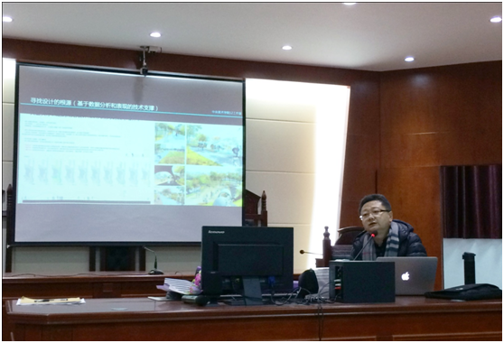 丁圆教授对“创新设计思维”艺术原创力与艺术介入方法进行了全面阐述。他首先深入探究了艺术旧元素和基调的统一方式,他以乌镇的水景设计为例,讲述物质性规划与内容性规划的平衡;再以伦勃朗的自画像色彩、莫奈的作品情感及杜尚的抽象化作品为例,将艺术作品与设计作品的对应,说明设计不单单只是外观的复制应发展到思维方式的运用,更重要的是艺术发展的逻辑与影响力。接着从历史与哲学的角度出发和我们分享了一流大学的经理思想,讲述了设计应该是历史与理论+设计实践+技术支撑+视觉艺术的一种复合型设计。丁圆教授还与大家分享了一个“艺术介入”的概念,旨在打破艺术专业与行业壁垒,构建以策展人、艺术家、设计师和业主机构为核心的艺术推广平台。最后丁教授用几个大型的案例为这场生动又深刻的讲座画上了圆满的句号。