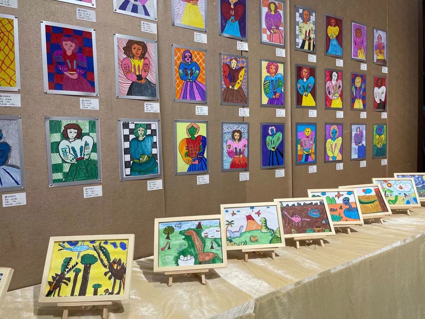 本次展览在比较、融合与创新的策展理念指导下,以老员工与小员工美术作品联合展览为艺术特色,作品主题新颖,艺术形式丰富,艺术趣味盎然,能够贴近不同年龄层次观众的艺术观赏趣味,成为服务社会艺术美育的有益文艺活动。展出作品中,老员工美术作品以西方美术经典名作与长沙时下网红视觉形象的融合创新为主题,通过对话西方艺术经典,突显本地文化特色,79幅作品带给观众熟悉又新颖的视觉体验;展出的长沙市实验小学教师作品富有生活之美与文化品位,令人耳目一新。小员工美术作品则童趣盎然,形式丰富,涵盖艺术剪纸、折纸龙舟、儿童绘画及端午主题手工香囊等,全面展现出长沙市实验小学在小员工艺术美育方面的先进教育理念与高质量的教学创新成果。