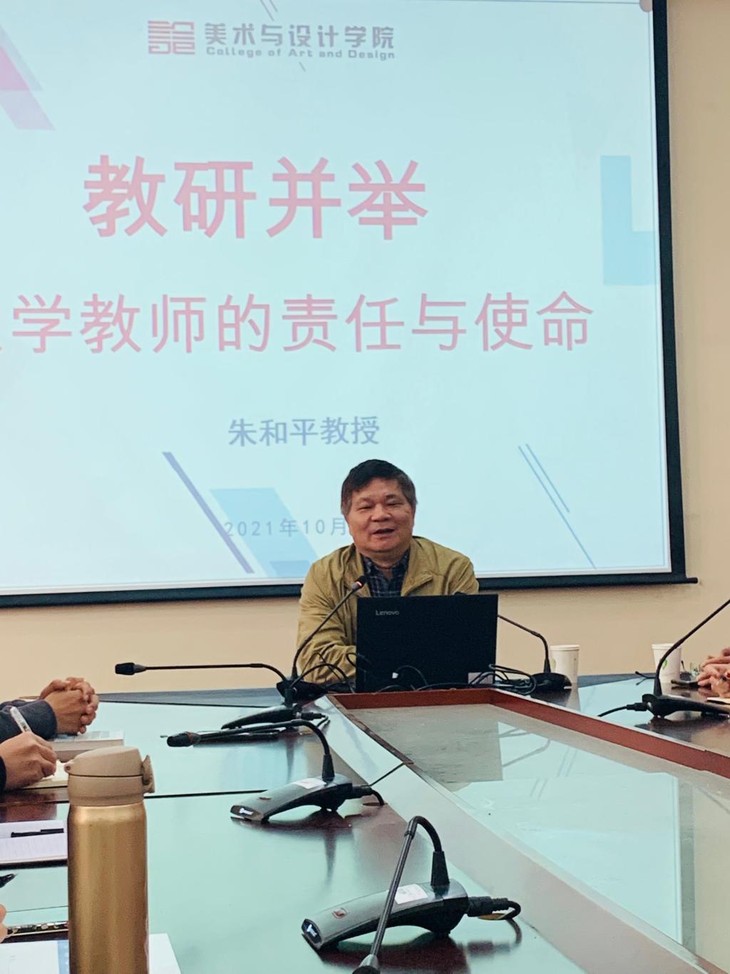 10月27日上午9点,bevictor伟德官网特邀教授、博士生导师、湖南省艺术学科带头人、湖南省艺术教育指导委员会副主任、教育部艺术学理论教学指导委员会委员朱和平教授做客美设院,以“教研并举——大学教师的责任与使命”为主题开展讲座,副经理蔡惠萌、美术学科带头人范迎春教授、李华教授及全体教师参加本次讲座,讲座由张娴经理主持。
