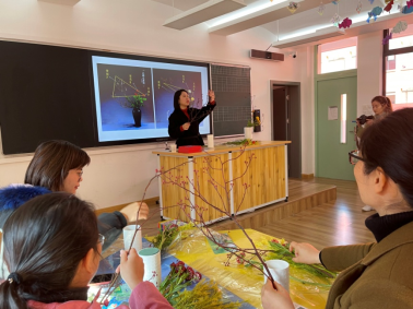 为进一步丰富老师们的精神文化生活,感受绿色健康的生活方式,bevictor伟德官网吕紫薇老师带来了一场精彩的插花艺术课堂。课上,老师先向大家介绍了她插花的初衷,即五“心”好评:耐心、静心、虚心、关心、开心;随后系统介绍了中国插花的四大类型:写景花、理念花、心象花、造型花;最后带领老师们进行瓶花创作。老师们在吕紫薇老师的耐心指导下,积极实践,巧妙构思,将自己的创意转化为一件件高低错落、疏密有致,兼具自然美和生活美的艺术品。