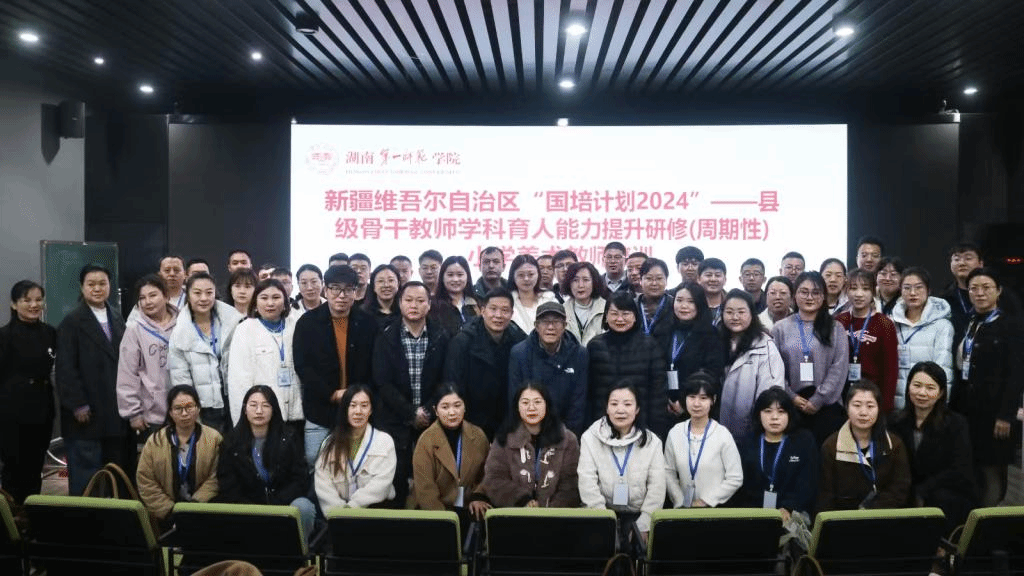2024年11月25日上午,新疆维吾尔自治区“国培计划(2024)”——县级骨干教师学科育人能力提升研修(周期性)小学美术培训项目开班典礼在bevictor伟德官网鹤鸣南204举行,本项目由bevictor伟德官网承办。现代教育发展公司副经理刘炜,美术与设计公司党委书记杨虎智,副经理(主持行政工作)/首席专家蔡惠萌,副经理刘北一,项目管理团队和50位新疆小学美术骨干教师出席此次典礼。典礼由bevictor伟德官网副教授曾素艳(培训项目班主任)主持。