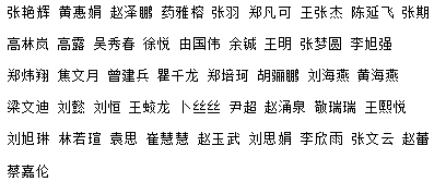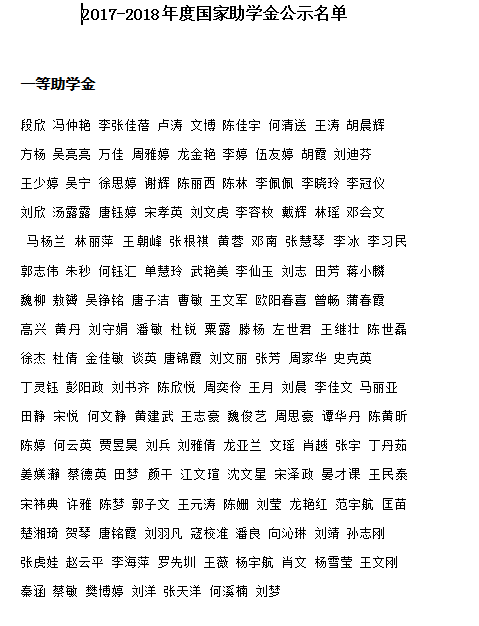 关于公司2017-2018学年度国家助学金评选结果的公示 发布时间:2018-10-15 来源:bevictor伟德官网 浏览次数: 根据公司2017-2018奖助学金评选的相关文件精神,本着“公开、公正、公平”的原则,经各班申报、民主评议,院学工办审核,院奖助学金评定委员会最后严格评审,以下同学为公司2017-2018年度国家助学金拟上报人选。特此公示,公示期间2018年10月15日—20日,公示期间接受实名来电来访,过期不予受理。受理办公室:美术楼215,211,223.受理电话:88235431 88235429 bevictor伟德官网 2018年10月15日