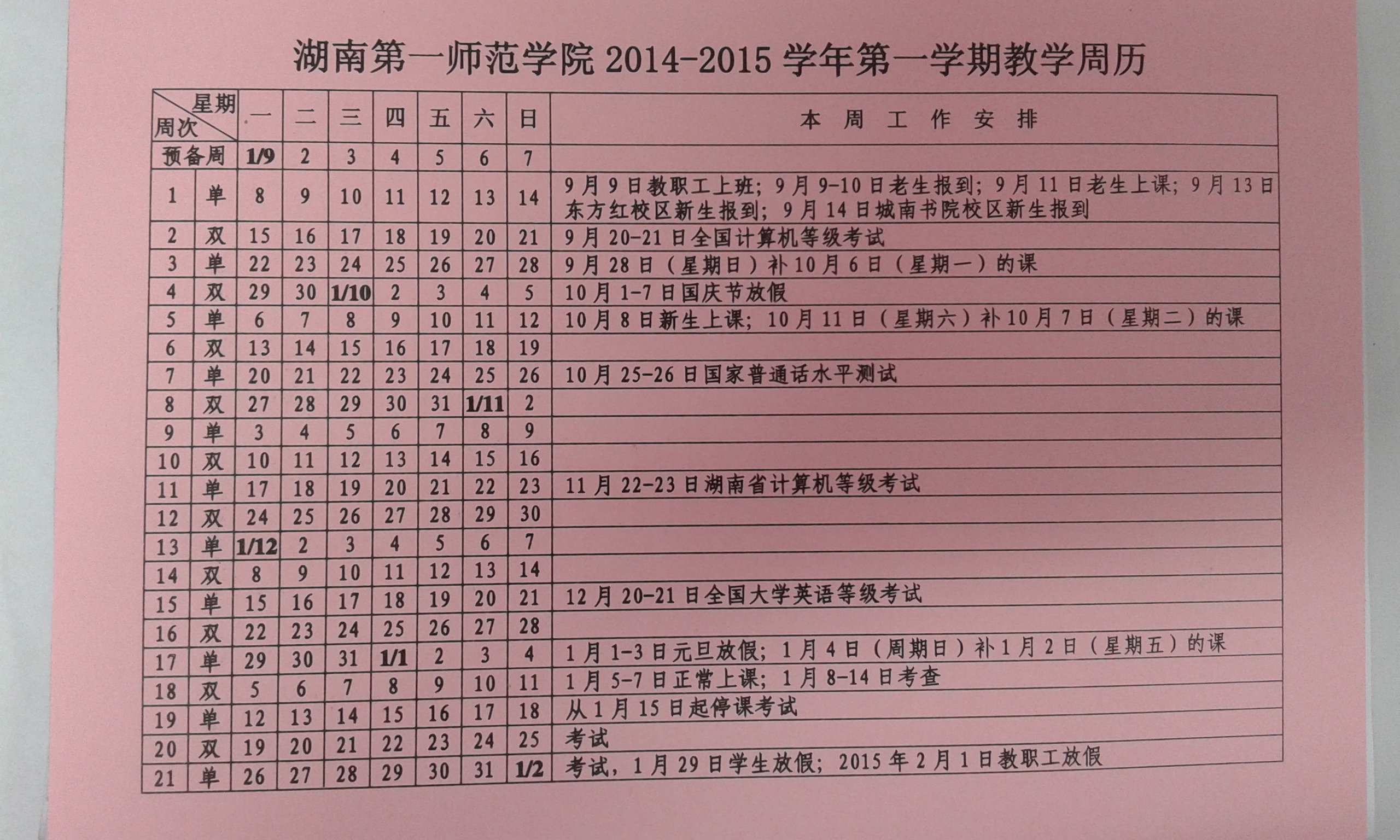 2014-2015学年第一学期教学周历 发布时间:2017-08-23 来源:bevictor伟德官网 浏览次数: 上一条:关于做好2014年员工学业预警工作的通知 下一条:关于组织2014级新生查询学信网学籍电子注册信息的通知