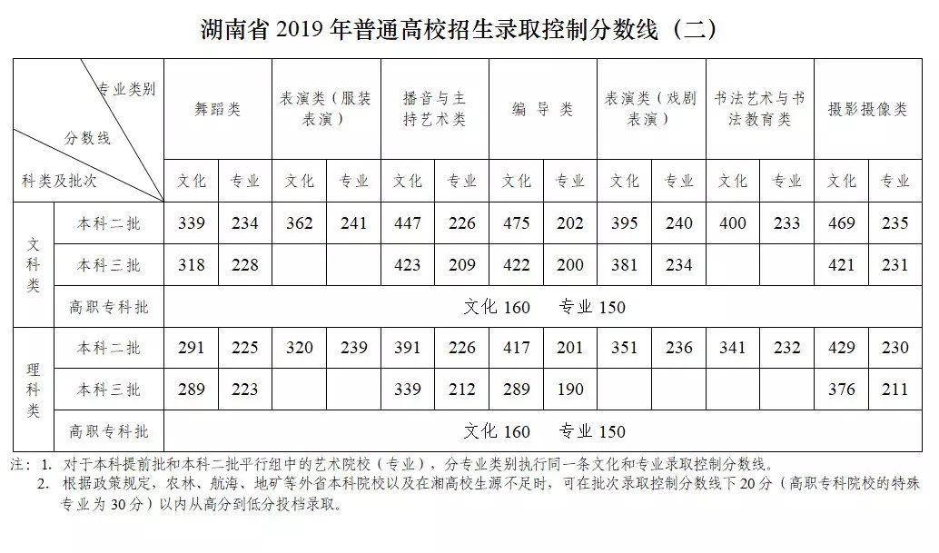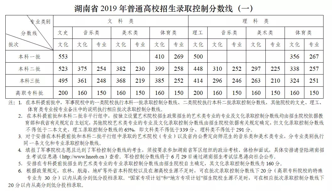 湖南省发布2019年普通高校招生录取控制分数线