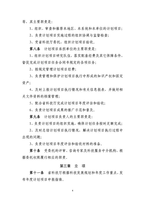 第十一条 软科学研究计划项目一经批准,即具有指令性效力。项目承担单位不得随意变更项目负责人。对无故不按合同规定的时限完成任务的项目负责人,省科学技术厅三年内不再受理其项目申请。