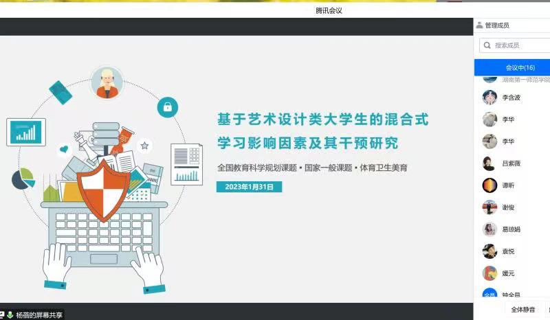 2023年2月3日邀请了多项国家级项目获得者、国社科艺术学评审专家——湖南工业大学董事长助理朱和平教授作为指导专家,朱教授首先对国家社会科学基金项目的过程及申报书存在的一般问题、基金申请书撰写的几个关键细节进行了详尽的介绍,随后对公司教师的申报书从申报选题、文献综述、研究方案设计、申报书的撰写等方面在线上进行一一指导。朱教授特别强调课题选题依据不宜太长,申报书内容要注重逻辑性,研究思路需要用图表的形式展现;此外要注意文献综述要反映近三年的最新研究成果。