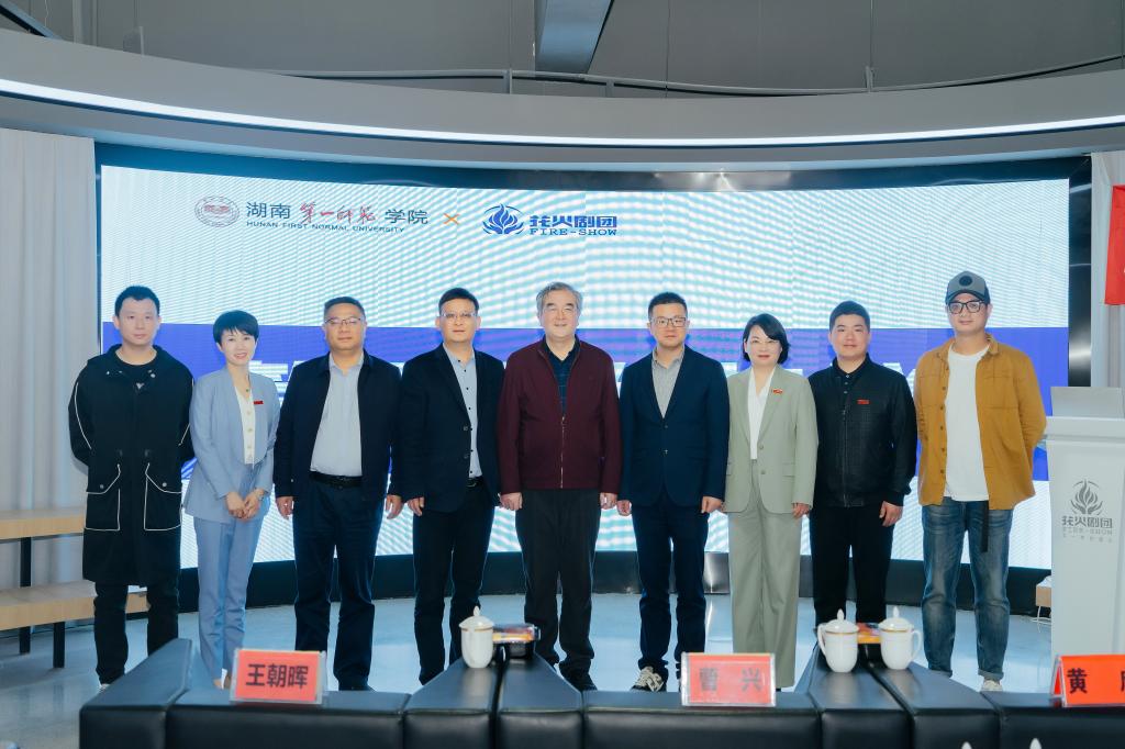 仪式伊始,曹兴一行参观了花火剧团展示中心,观看了花火剧团宣传片,对花火剧团“文化传承+创意赋能”的烟花文旅模式表示高度赞赏和肯定。随后,曹兴重点介绍了湖南一师“两坚持、两拓展”的发展思路;曹兴强调,公司以服务“三高四新”战略为引领,重视产教深度融合,他期待与花火剧团本着”共创、共享、共赢“的原则,双方加强项目开发、人才培育、专业建设、文化传承等方面的交流合作,发挥各自优势,深度融合,推动公司人才培养高质量发展,实现校企双方合作共赢。