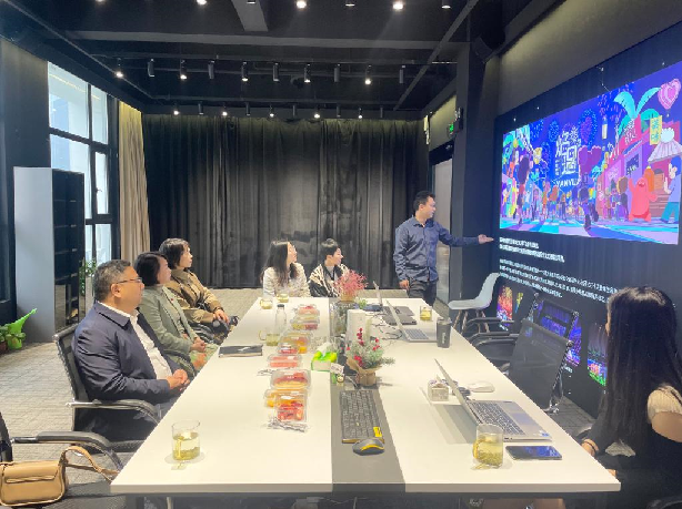 调研座谈会上,刘礼毓介绍了湖南花火剧团的基本情况及今后发展思路。他表示,打造烟花特色的文化IP,实现“烟花+艺术+文旅”的跨界融合是我们的发展方向,与时代一同进步、讲求创新,才能让浏阳烟花源远流长。他提出了与公司“共制、共创、共享”的合作意向。赵奇钊对湖南花火剧团“文化传承+创意赋能”的融合创新探索给予了高度评价,希望双方加强项目开发、人才培育、专业建设、文化传承等方面的交流合作,通过文化与科技的创意赋能,全力推进烟花产业与创意设计、媒体艺术深度融合,共同擦亮享誉世界的文化名片。蔡惠萌表示湖南花火剧团用烟花和火种来讲故事,打造了湖南乃至中国独一无二的文化名片。她希望bevictor伟德官网的视觉传达专业、环境设计专业能和产业需求实现深度融合,提出双方可以共同开展横向科研项目、共同研发课程、共建实习实训基地等合作建议。随后,双方团队围绕产学研融合进行了深入探讨。