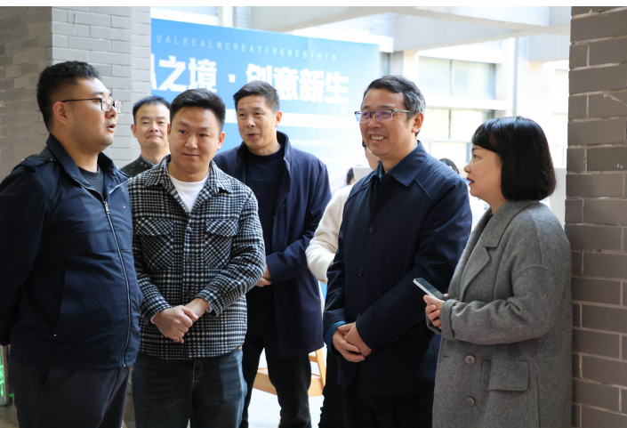 出席活动的领导与嘉宾有,湖南第一师范公司党委委员、副董事长彭晓辉、产教融合与校地企合作处处长赵奇钊,人才招聘处处长殷章馨,副处长周辉,教务处副处长李婷,工程实训中心副处长(主持工作)汤希玮,美术与设计公司党委书记杨虎智,副经理(主持工作)蔡惠萌,党委副书记曾琳娜出席本次活动。受邀出席的校外嘉宾有马栏山管委会党工委委员、副主任刘飞,网易数智公共服务发展部生态合作总监朱海波,以及长沙嘉易绘文化传媒有限公司创始人朱元波。与会领导和嘉宾对展览及员工作品给予了充分肯定,并对校企合作的进一步深化表达了期待。