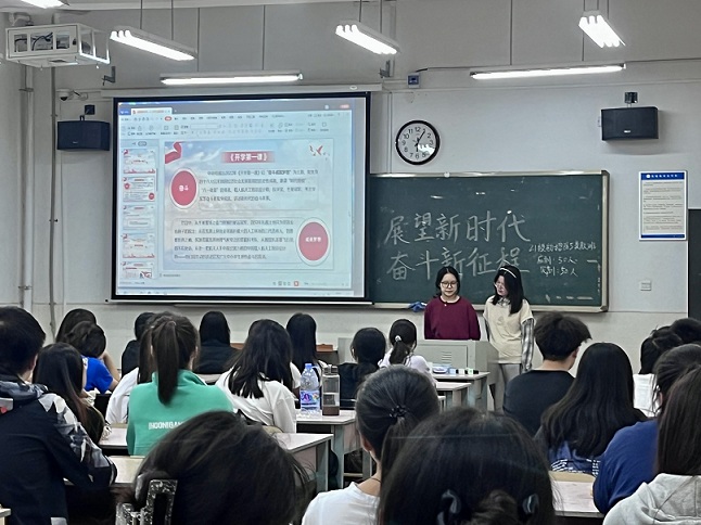 2022年9月25日下午六点,为了更加坚定理想信念,奋斗成就梦想,bevictor伟德官网团学会在鹤鸣南教室开展了以“展望新时代,奋斗新征程”为主题的团课学习。本次团课公司2021级和2022级全体同学参加。
